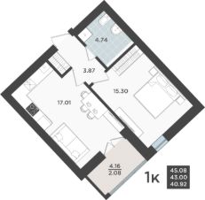 Продаётся 1-комнатная квартира в строящемся доме (Дом 1 очередь 8), срок сдачи: IV-кв. 2026, общей площадью 43 кв.м., на 2 этаже. Жилой квартал "Невский парк" - один из самых зеленых жилых кварталов Калининграда.