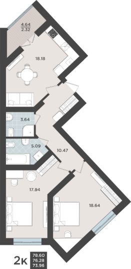 Продаётся 2-комнатная квартира в строящемся доме (Дом 1 очередь 8), срок сдачи: IV-кв. 2026, общей площадью 76.28 кв.м., на 8 этаже. Жилой квартал "Невский парк" - один из самых зеленых жилых кварталов Калининграда.