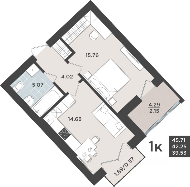 Продаётся 1-комнатная квартира в строящемся доме (Дом 1 очередь 8), срок сдачи: IV-кв. 2026, общей площадью 42.25 кв.м., на 9 этаже. Жилой квартал "Невский парк" - один из самых зеленых жилых кварталов Калининграда.