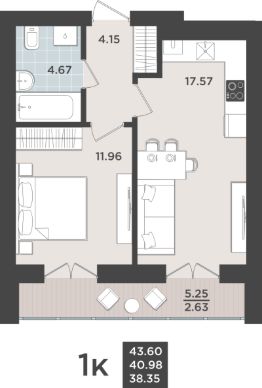 Продаётся 1-комнатная квартира в строящемся доме (Дом 1 очередь 8), срок сдачи: IV-кв. 2026, общей площадью 40.98 кв.м., на 1 этаже. Жилой квартал "Невский парк" - один из самых зеленых жилых кварталов Калининграда.