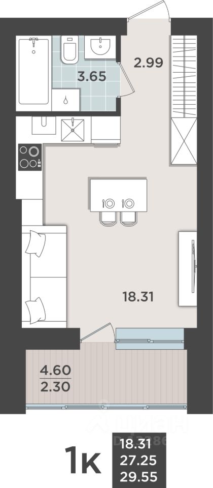 Продаётся 1-комнатная квартира в сданном доме (Арсенальная, 31к4 (Дом 4 очередь 3)), срок сдачи: II-кв. 2025, общей площадью 27.25 кв.м., на 9 этаже. Жилой квартал "Невский парк" - один из самых зеленых жилых кварталов Калининграда.