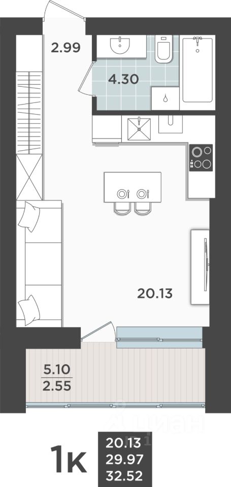 Продаётся 1-комнатная квартира в сданном доме (Арсенальная, 31к4 (Дом 4 очередь 3)), срок сдачи: II-кв. 2025, общей площадью 29.97 кв.м., на 8 этаже. Жилой квартал "Невский парк" - один из самых зеленых жилых кварталов Калининграда.