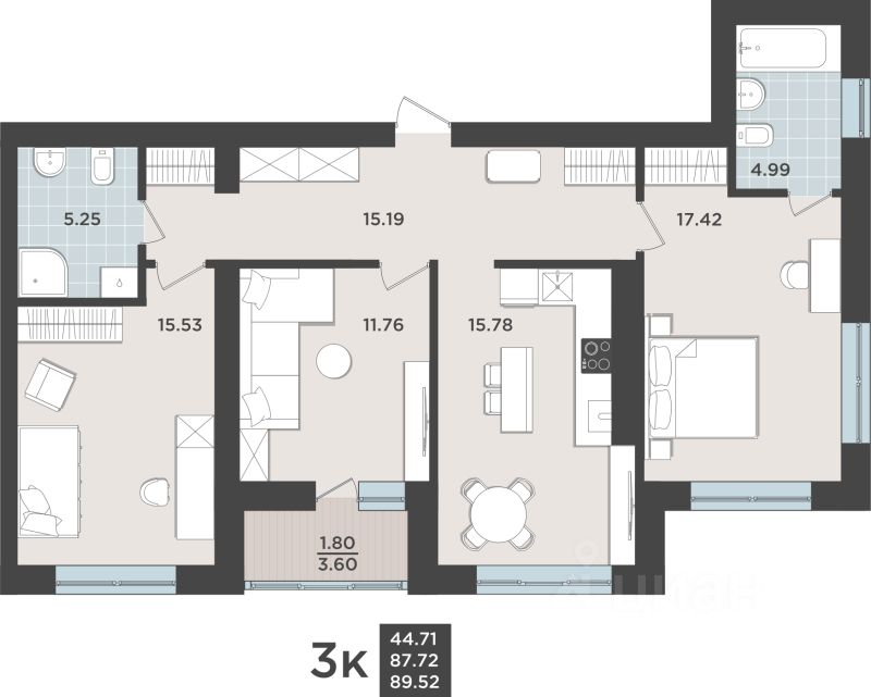 Продаётся 3-комнатная квартира в сданном доме (Арсенальная, 29к3 (Дом 3 очередь 1)), срок сдачи: IV-кв. 2024, общей площадью 87.72 кв.м., на 1 этаже. Жилой квартал "Невский парк" - один из самых зеленых жилых кварталов Калининграда.