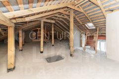 Второй уровень (146,2 кв.м.) представляет собой мансардное пространство свободной планировки в сером ключе. Имеются выводы под канализацию и электричество, что открывает возможности для реализации дизайнерских решений и самых смелых фантазий. Под мансардным уровнем расположена отдельная квартира с полностью функционирующими коммуникациями.