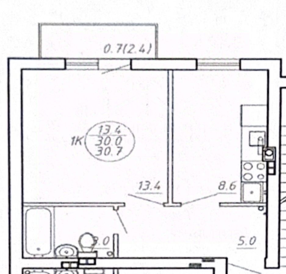 В продаже однокомнатная квартира в ЖК Новом Голубево в пригороде города Калининграда.