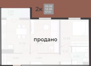 Общая площадь — 59 м²Просторная кухня 13,35 м² — место для семейных ужинов2 смежно-изолированные комнаты — удобно для родителей и ребёнкаСовмещённый санузел с встроенной сантехникойБольшой застеклённый балкон с освещениемВид на частный сектор — тишина и спокойствиеАвтономное газовое отопление — контроль температуры и экономия