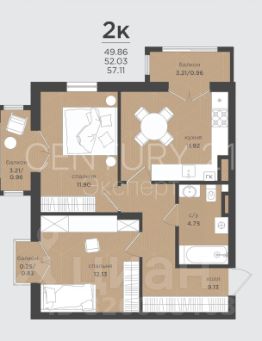 В продаже двухкомнатная квартира удачной планировки в ЖК Вишневый квартал