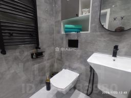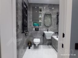В квартире сделан дизайнерский ремонт. Санузел совмещён, в кафеле. Тёплый пол на кухне, в ванной комнате и в коридоре, в ванной комнате также тёплая часть стены. Встроенная корпусная мебель по индивидуальному проекту, много мест хранения вещей, посуды. Мебель - техника на гарантии.