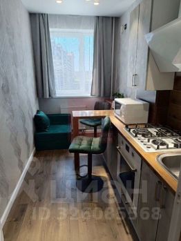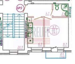 Общая площадь 23.2 кв. м, кухня 6.3 кв. м, спальня 11 кв. м с выходом на балкон, совмещенный санузел. Окна выходят во двор.