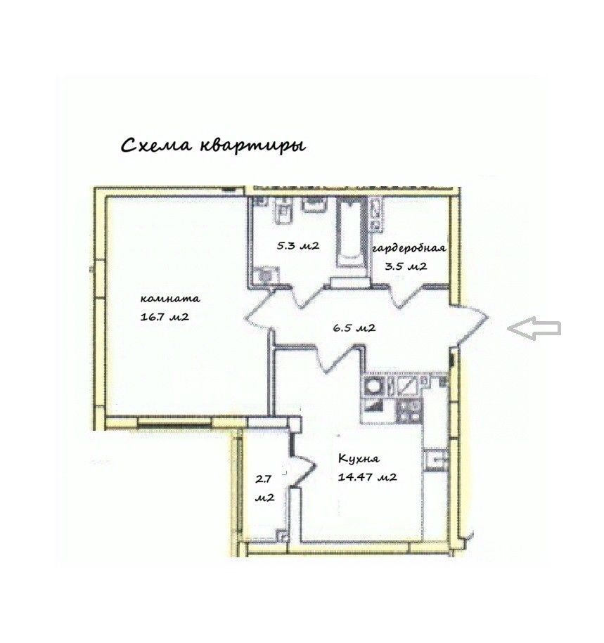 Арт. 129001671 В продаже просторная однокомнатная квартира в сером ключе в самом востребованном районе Калининграда!