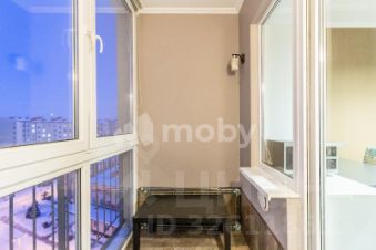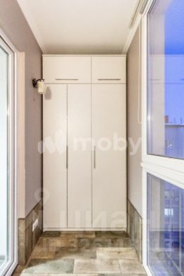 Панорамная лоджия с большими окнами и встроенным шкафом — идеальное место для рабочего кабинета, зоны отдыха или уютного уголка с видом во двор. Большое расстояние между домами.