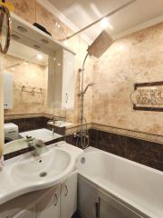 Интересный дизайн, основательный ремонт. Все исправно и прослужит долгие годы, не требуется никаких вложений. Все комнаты изолированные 17, 18 и 12.3 кв.м., кухня 8,4 кв.м., раздельный санузел, 2 просторные застекленные лоджии выходят на разные стороны. Много мест хранения, есть дополнительное пространство для гардеробной.