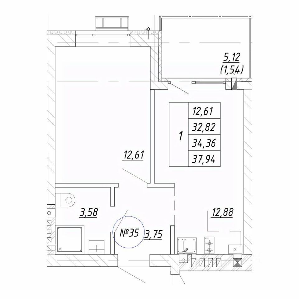 Общая площадь37,94 м²