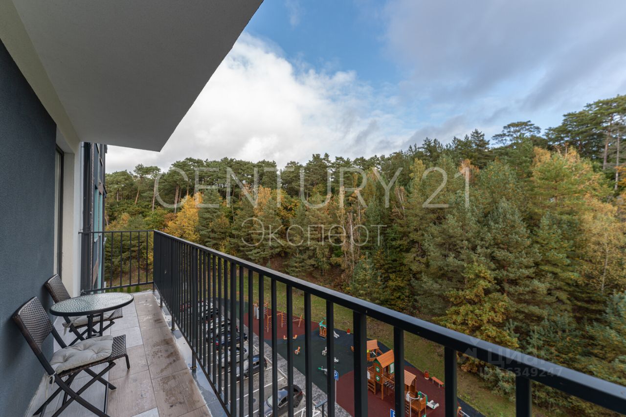 Уютная лоджия с выходом из кухни и комнаты, с видом на сосновый лес