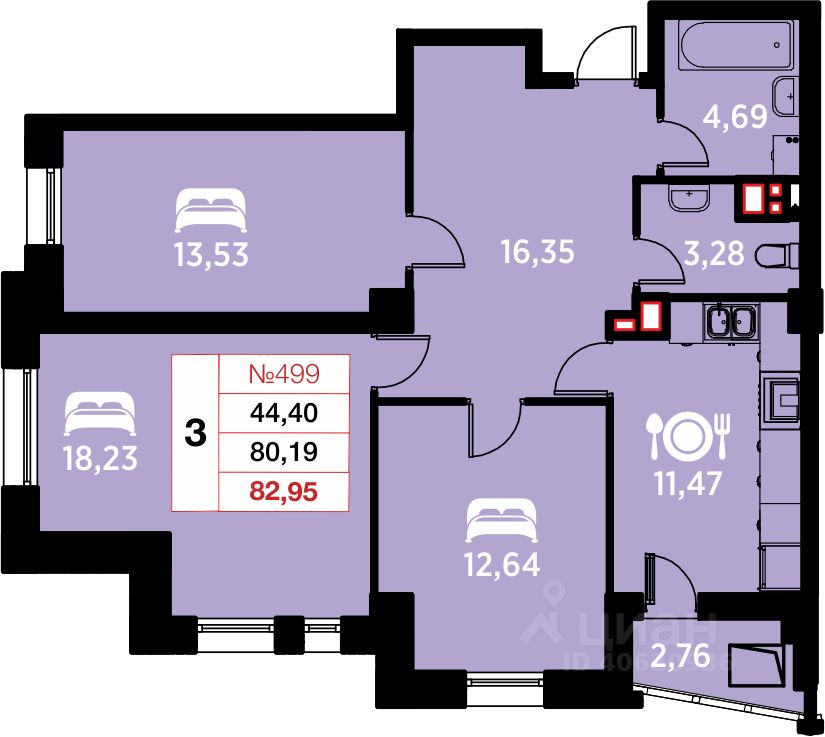 Продается 3 комнатная квартира 499 в ЖК комфорт класса "Калининград Сити" в самом сердце Калининграда, панорамные виды!