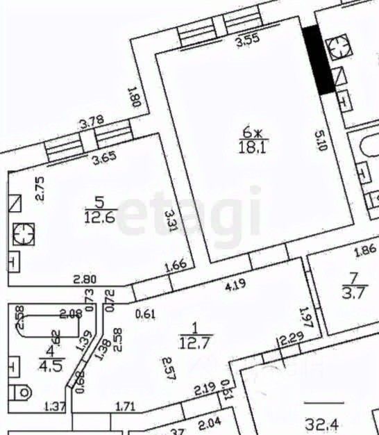 - Просторная трехкомнатная квартира площадью 77 кв.м.