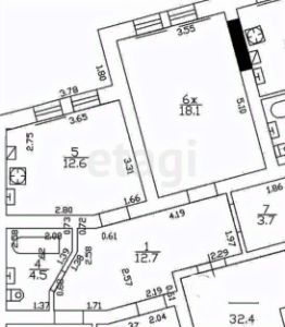 - Кухня-гостиная: 30,7 кв.м — просторное светлое помещение с современным ремонтом.