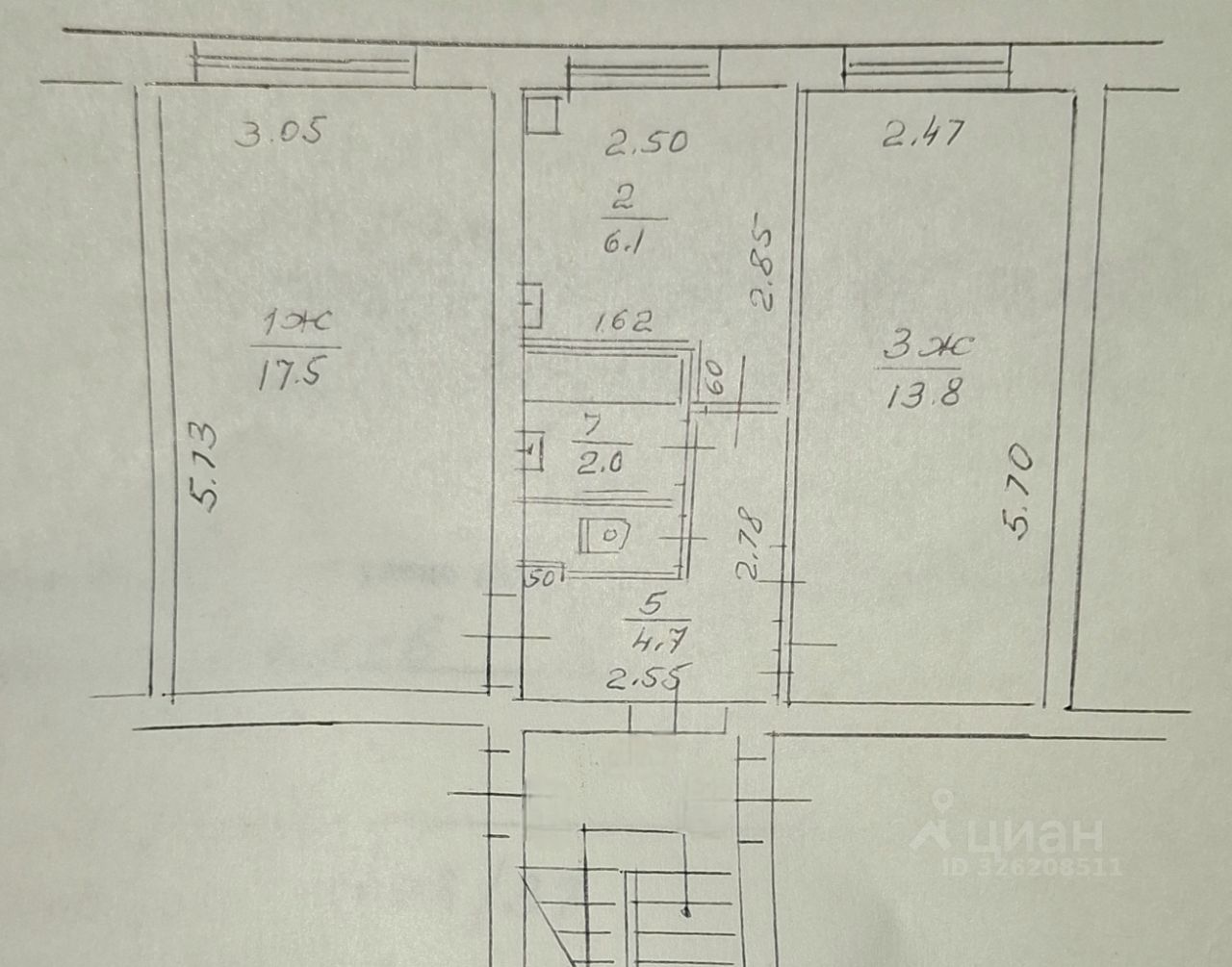Просторная двухкомнатная квартира с возможностью воплотить мечты о ремонте.