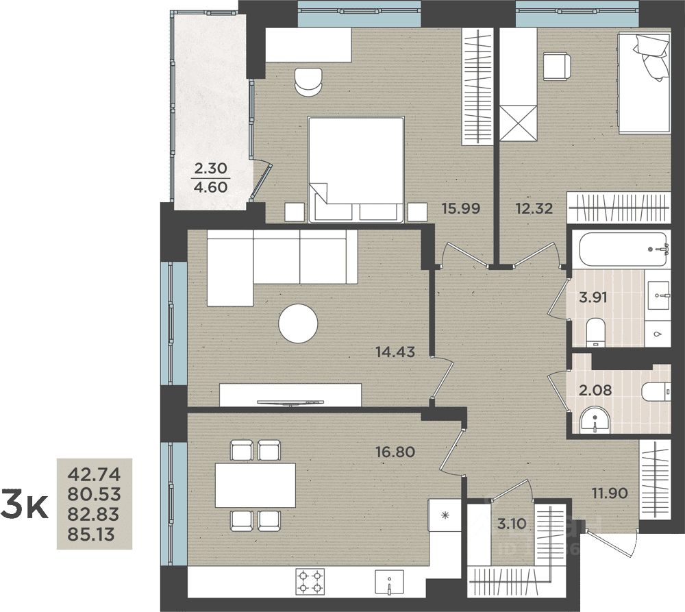 Продаётся 3-комнатная квартира в сданном доме (Земельная, 30 (Дом 1.2)), срок сдачи: I-кв. 2023, общей площадью 82.83 кв.м., на 1 этаже. Новый жилой комплекс "Горький" от застройщика "Калининградстройинвест" расположен по адресу: г. Калининград, улица Горького.