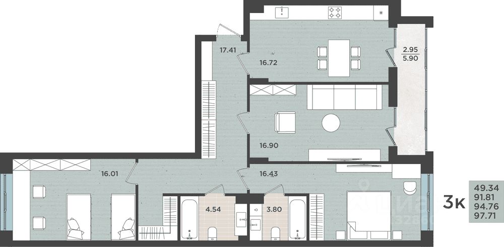 Продаётся 3-комнатная квартира в сданном доме (Земельная, 30 (Дом 1.2)), срок сдачи: I-кв. 2023, общей площадью 94.76 кв.м., на 1 этаже. Новый жилой комплекс "Горький" от застройщика "Калининградстройинвест" расположен по адресу: г. Калининград, улица Горького.