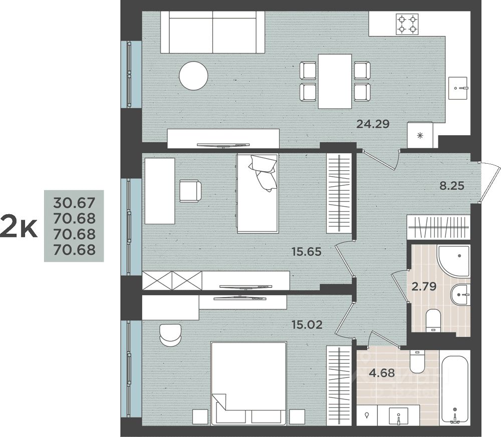 70,68 м²
