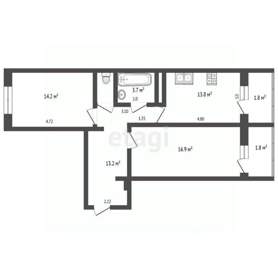 — Две изолированные комнаты правильной формы: 16,9 м² и 14,2 м² — тишина и уют гарантированы