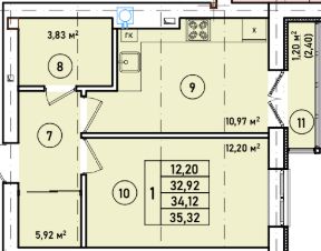 Продаётся 1-комнатная квартира в строящемся доме (Дом 1), срок сдачи: III-кв. 2026, общей площадью 34.12 кв.м., на 2 этаже. Современный жилой 7-ми этажный дом в сердце города.