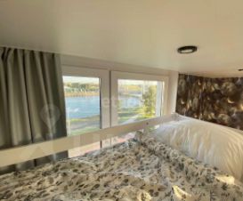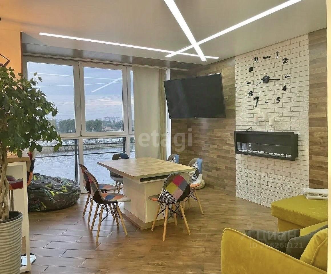 -теплый пол от газового котла (несколько контуров), в окна видны водные трамвайчики, проходящие мимо суда, электрички по двухъярусному мосту.