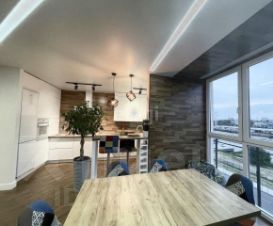 -большая кухня-гостиная почти 30 кв.м. с обеденной зоной и раскладным диваном,