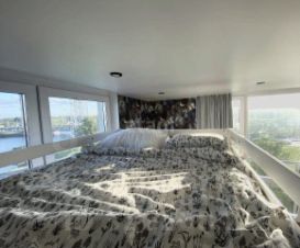 В квартире две спальни, большая гардеробная, ванная комната с тропическим душем, а также собственная прачечная со стиральной и сушильной машиной.