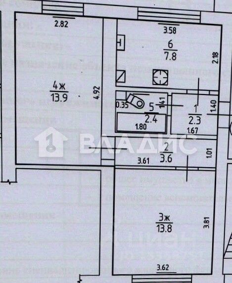 Общая площадь составляет 43,8 кв. м, из которых 27,7 кв. м — жилая площадь. Две изолированные комнаты площадью 13,9 кв. м и 13,8 кв. м, удобная кухня площадью 7,8 кв. м. В квартире сделан косметический ремонт, что позволит новым владельцам сразу заселиться и начать наслаждаться новым домом.