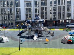 Территория комплекса обширная, тихая и комфортная, практически закрытая для движения любого транспорта, что превращает аллеи и дорожки комплекса в любимое место прогулок жителей и гостей.