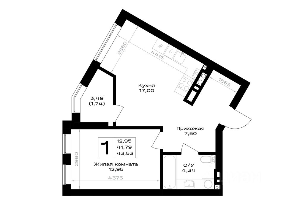 43,53 м²