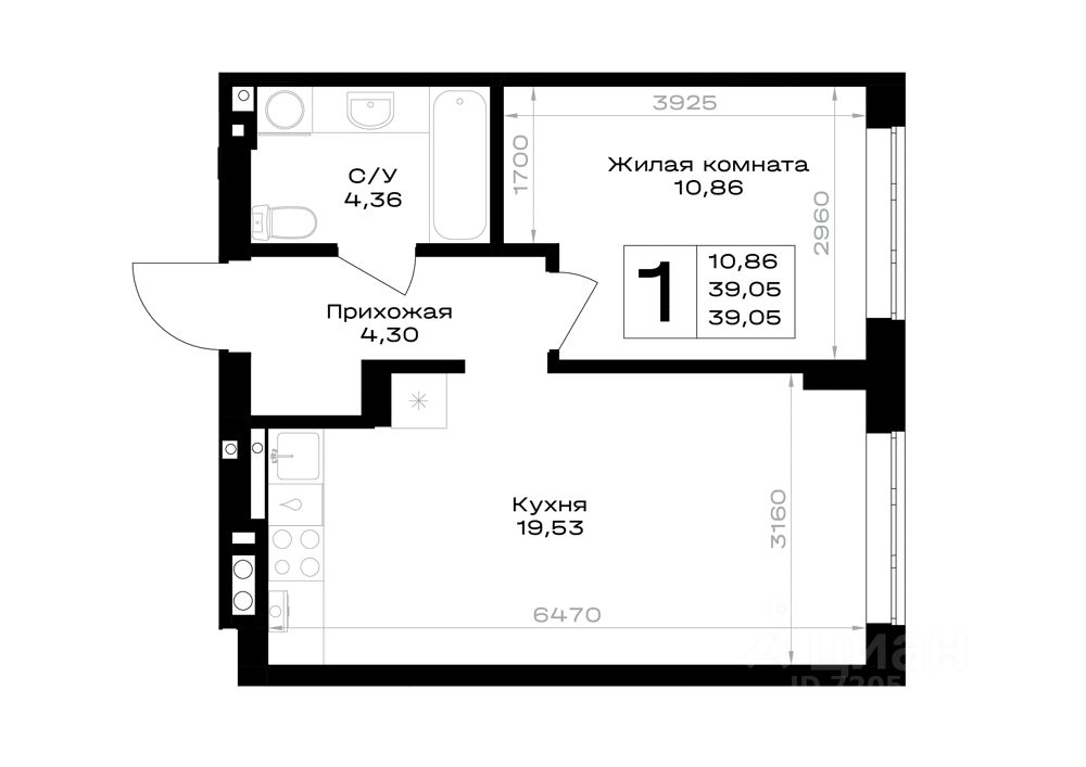 39,05 м²