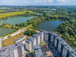 Жилой комплекс "Новый город" находится в тихом, зеленом и экологически чистом районе г. Калининграда. Дома окружены питьевыми озерами и лиственным лесом. На территории комплекса детские площадки, игровые площадки для подростков и площадки для занятия спортом.