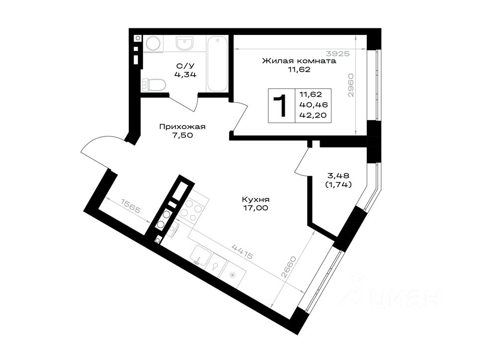Продаётся 1-комнатная квартира в строящемся доме (Дом 22 (1 очередь)), срок сдачи: III-кв. 2027, общей площадью 42.2 кв.м., на 7 этаже. Новый жилой комплекс "Включи" от застройщика "СпецСтройКубань" расположен в г. Гурьевск в районе Гурьевского шоссе.