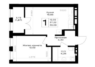 Общая площадь39,09 м²
