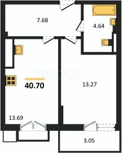 Квартира: 1 к 40,80 кв.м., 7 этаж в комплексе Аэро, 1 очередь, корп.A, сдача: 3кв. , этажей: 7, адрес Малое Исаково п., Первая ул., д. 1 корп 1, Застройщик: ГК Расцвет.