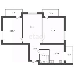 Так же в квартире 2 остекленные лоджии, одна из которых увеличивает пространство кухни