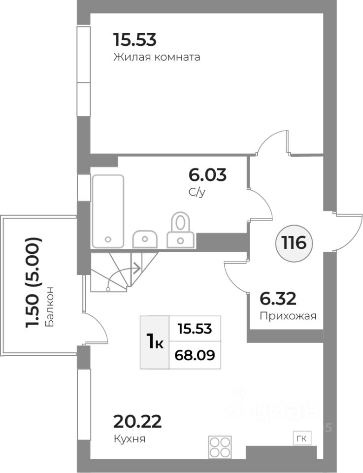 Общая площадь68,09 м²