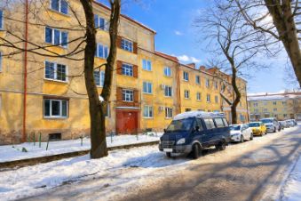 Квартира расположена на 4 этаже немецкого кирпичного дома 1935 года постройки.