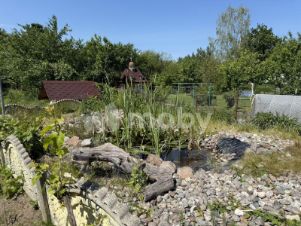 На территории возле дома есть зона с мангалом, машиноместо, беседки, декоративный пруд, растут деревья и цветы, сад и огород.