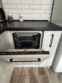 Из техники остаются газовый котёл, вытяжка, плита, кофеварка, холодильник, вертикальный беспроводной пылесос; стиральная машина и телевизор. Также есть выделенное место для посудомоечной машины, которую требуется заменить. Для дополнительной безопасности установлены датчики дыма.