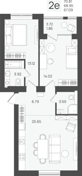 Продаётся 2-комнатная квартира в строящемся доме (Дом 3), срок сдачи: IV-кв. 2026, общей площадью 68.95 кв.м., на 1 этаже.