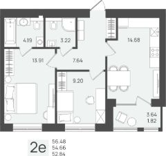 Продаётся 2-комнатная квартира в строящемся доме (Дом 3), срок сдачи: IV-кв. 2026, общей площадью 54.66 кв.м., на 1 этаже.
