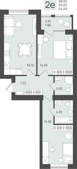Продаётся 2-комнатная квартира в строящемся доме (Дом 3), срок сдачи: IV-кв. 2026, общей площадью 66.05 кв.м., на 2 этаже.