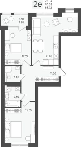 Продаётся 2-комнатная квартира в строящемся доме (Дом 3), срок сдачи: IV-кв. 2026, общей площадью 70.68 кв.м., на 2 этаже.
