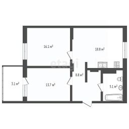Две комнаты по 16,1 и 13,7 кв.м., с одной комнаты выход на лоджию.