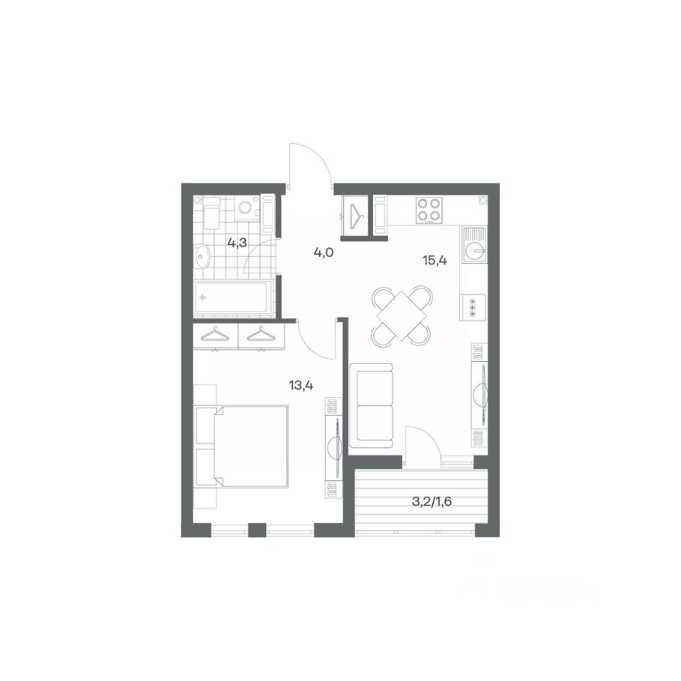 в Гагарина 30 от компании ГК "ТРЕСТ". Площадь кухни 15.4 м². Жилой комплекс комфорт-класса "Гагарина 30" расположен в Ленинградском районе Калининграда на улице Юрия Гагарина. Жилой комплекс включает в себя три корпуса высотой 9-18 этажей. Срок сдачи намечен на 1 квартал 2028 года.