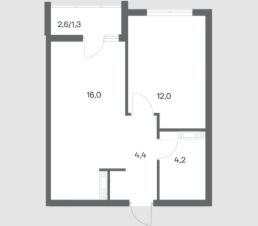в Гагарина 30 от компании ГК "ТРЕСТ". Площадь кухни 16 м². Жилой комплекс комфорт-класса "Гагарина 30" расположен в Ленинградском районе Калининграда на улице Юрия Гагарина. Жилой комплекс включает в себя три корпуса высотой 9-18 этажей. Срок сдачи намечен на 1 квартал 2028 года.